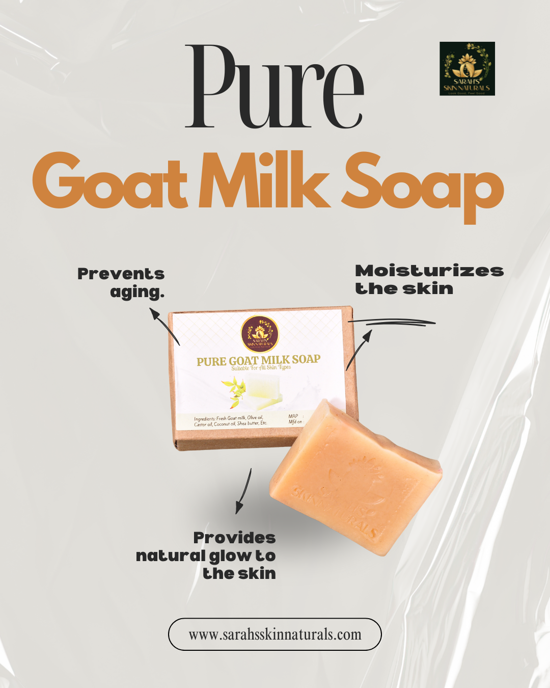 Crafted with fresh goat milk and simple, skin-loving ingredients, this pure goat milk soap gently cleanses and deeply nourishes the skin. Naturally rich in vitamins A, D, and E, as well as moisturizing fatty acids, goat milk helps to soothe dryness and support a healthy skin barrier.